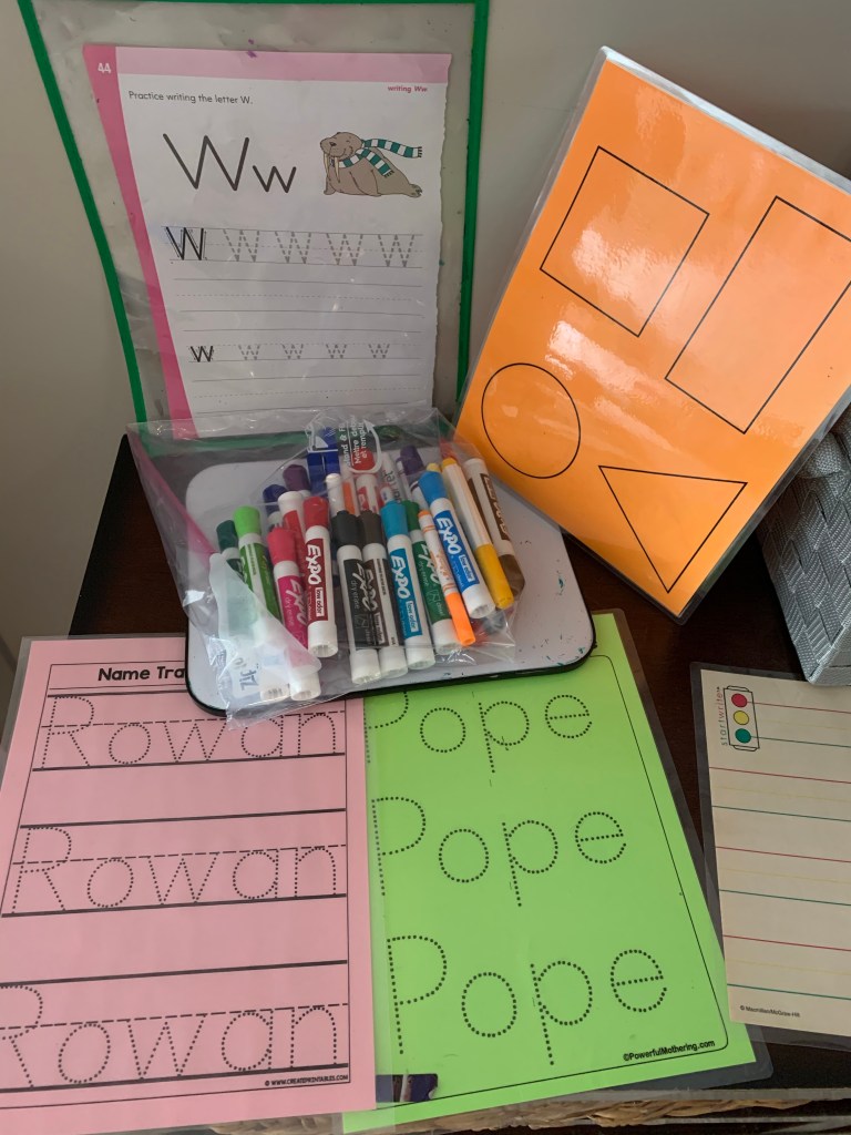 If you plan on working with your children, I highly suggest a schedule and a designated place to work. You’ll go crazy cleaning up every part of your house. We have a finished third floor that I have recently made solely into our Play Room.. so that’s where we will be doing our “school work”. Keep in mind I ammm a teacher.. most ALL of this stuff I’m about to share, I already had filed away or pre-made. It was not that much prep work for me, so just pick 1 or 2 things that you like and want to try! Don’t feel overwhelmed. ❤️