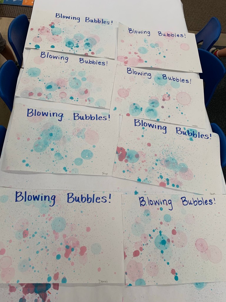 If you have small containers of bubbles on hand, put some food coloring in them and let your children blow colored bubbles!! Put a piece of paper on the ground and as they fall and pop, they create some pretty cool designs! I’ve done these with my preschoolers and it is MESSY but so much fun!! You can also create your own DIY bubbles, make an experiment out of it if you have older children. There are several DIY recipes out there..we may try to make a few and see which works the best.. then compare to the store bought bubbles.