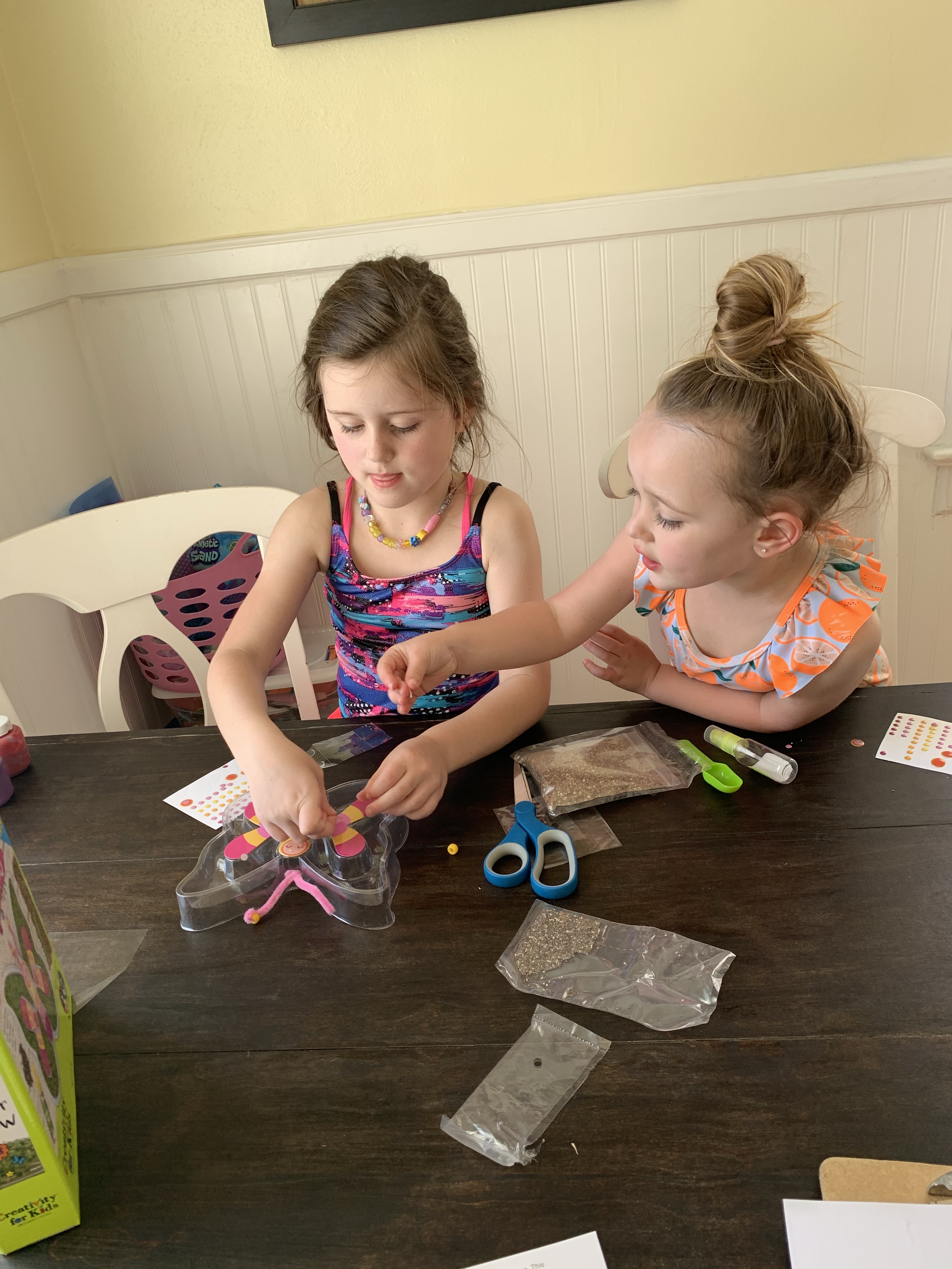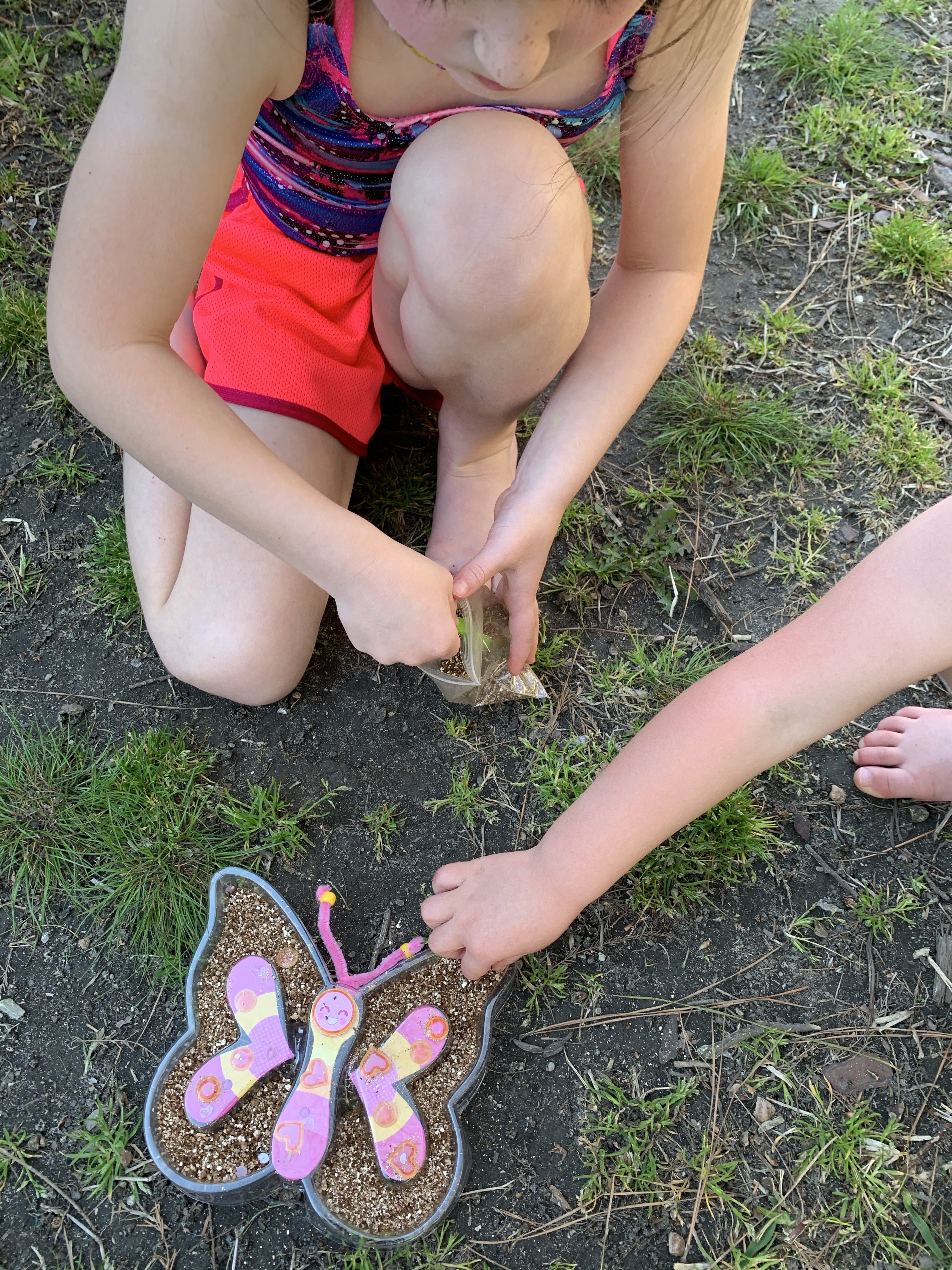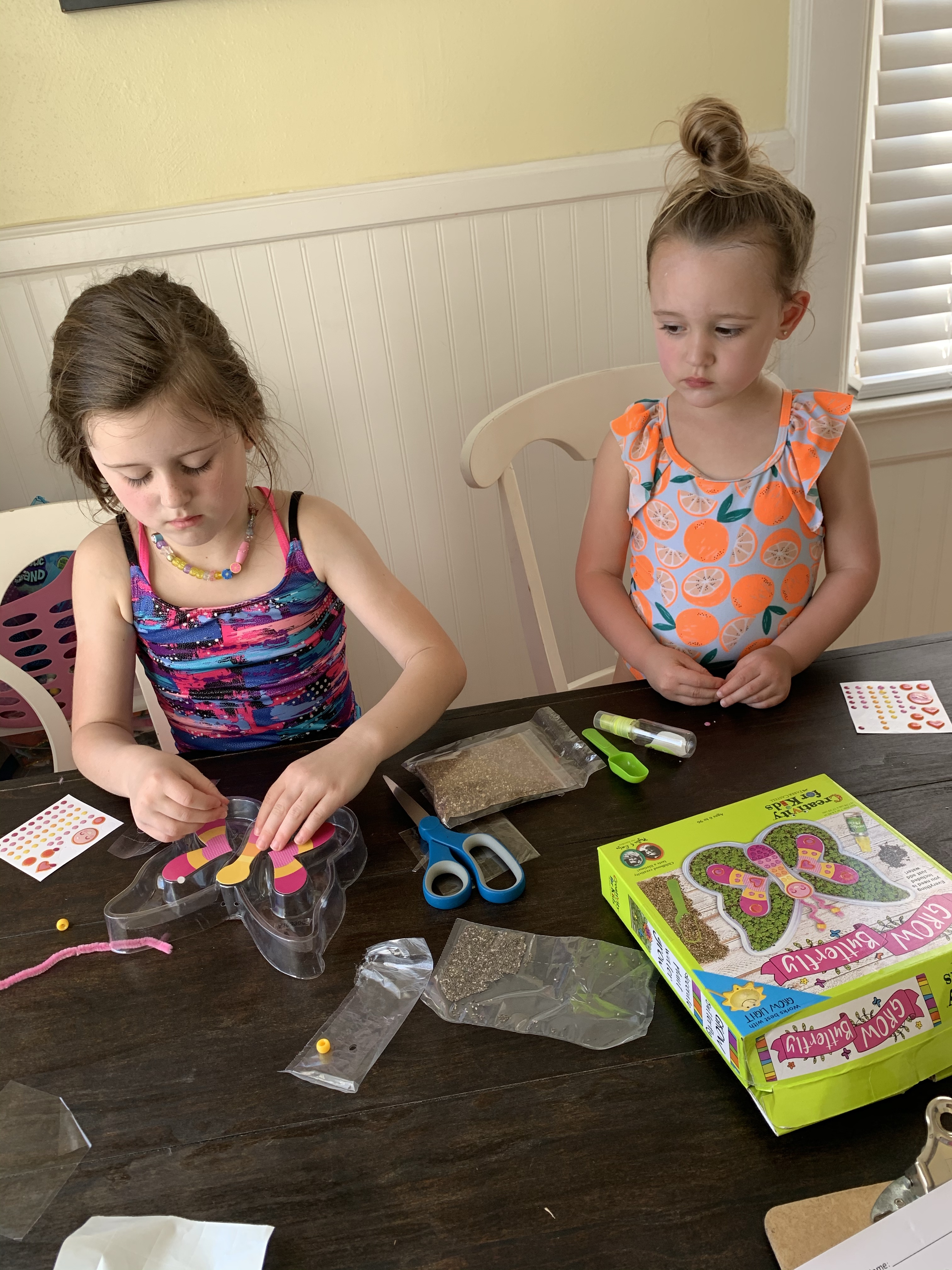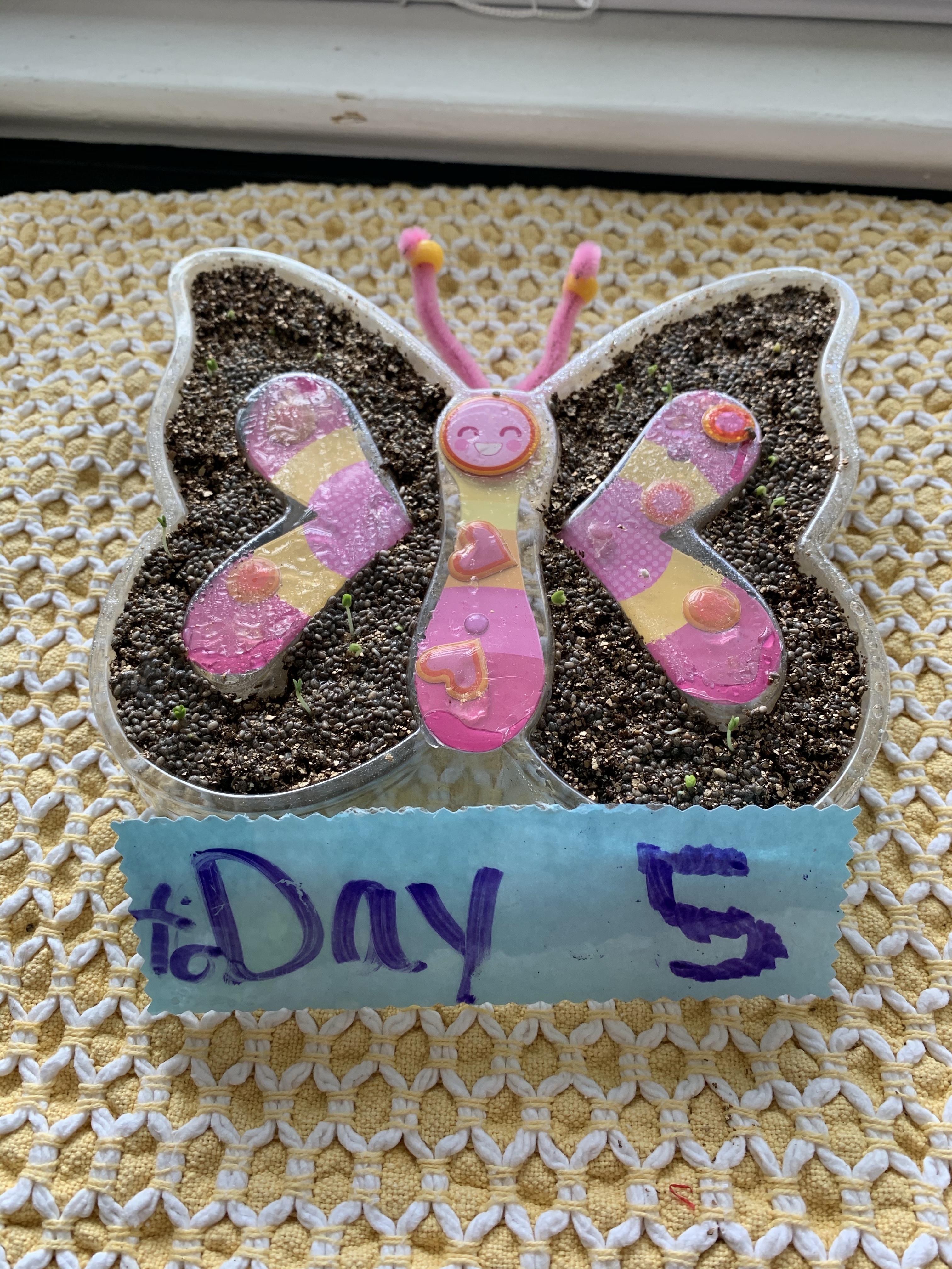 The girls decorated and planted the chia seeds all by themselves! Note- we didn’t pay attention (😬) and decorated the stickers on top of the plastic, they were supposed to go underneath! I did realize before we started putting the dirt in and fixed it but whoops – lesson learned! You can find this kit Here!