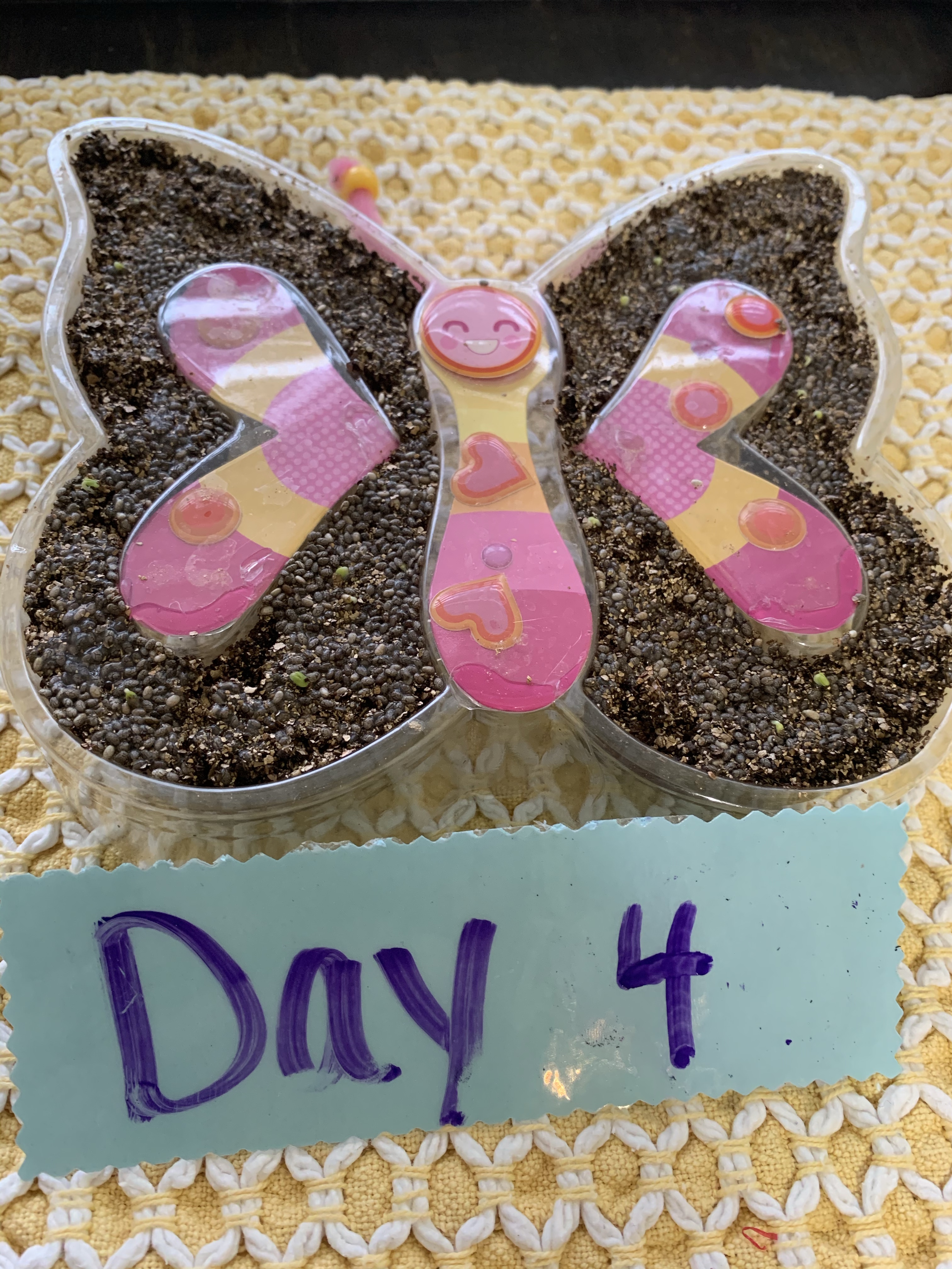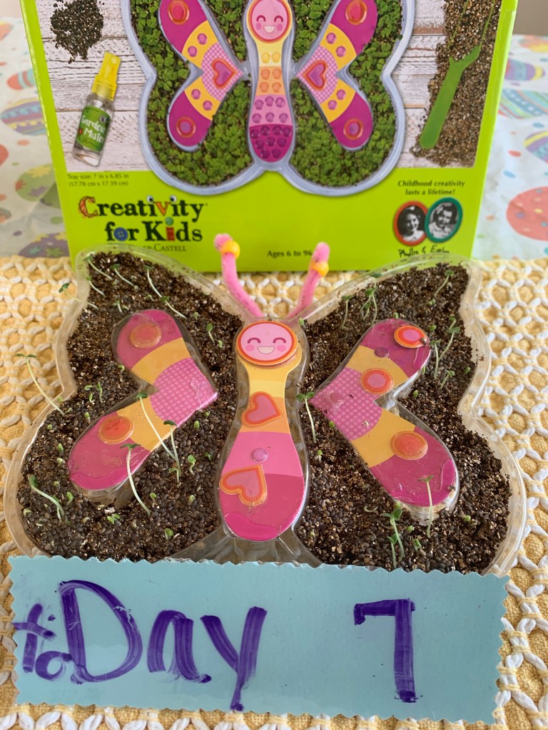 The girls received a “Butterfly Grow Kit” for Christmas. I make them space out their gifts so they can really enjoy them, because they are so loved they usually get overloaded. At a time like this, I’m so, so glad I have things stashed to pull out for them. We have been waiting for warmer days to start this kit! 🌞 🦋 🌱 It’s fairly simple and the girls did most of the prep themselves. They decorated, laid the soil, then planted the chia seeds. It comes with a cute little spray bottle to water it daily. (Fine motor!! Rowan actually has a difficult time with the spray bottle so this is great for her to practice and strengthen her little hand muscles!) They have also been observing and recording their observations daily. Teaghan even started her own little journal just for this. By day 3, we were already seeing sprouts begin! If you are talking about plants basic needs and plants’ life cycle with your child while doing this, you will be hitting science objectives in PreK-4th grade. Recording observations is also a few SOLs and of course your child will continue to practice their writing. Teaghan changes out the number of day each day with a dry erase marker and we snap a picture! It’s been a fun learning project that we are excited to continue to watch grow.